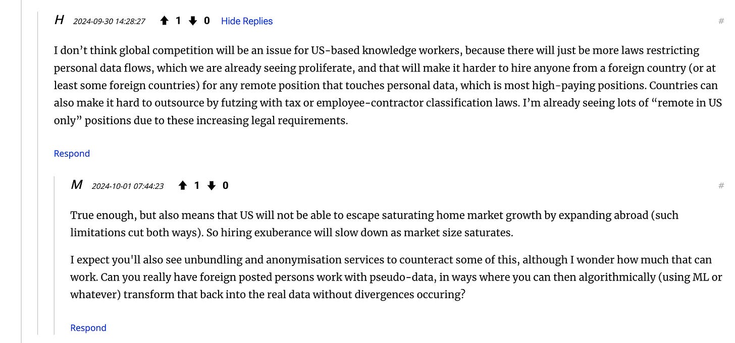 Nonetheless, I’m not so hopeful about people, for empirical, philosophical, and metaphysical reasons. I write about that in East Coast Straussian ways. I lay out the philosophical case in more detail in an essay that will be published some time in the next two months. The question about talent arbitrages actually gets to the heart of it: are societies made better by the attributes that people have in common, or the attributes that differentiate them? That should significantly impact views on talent and human nature.