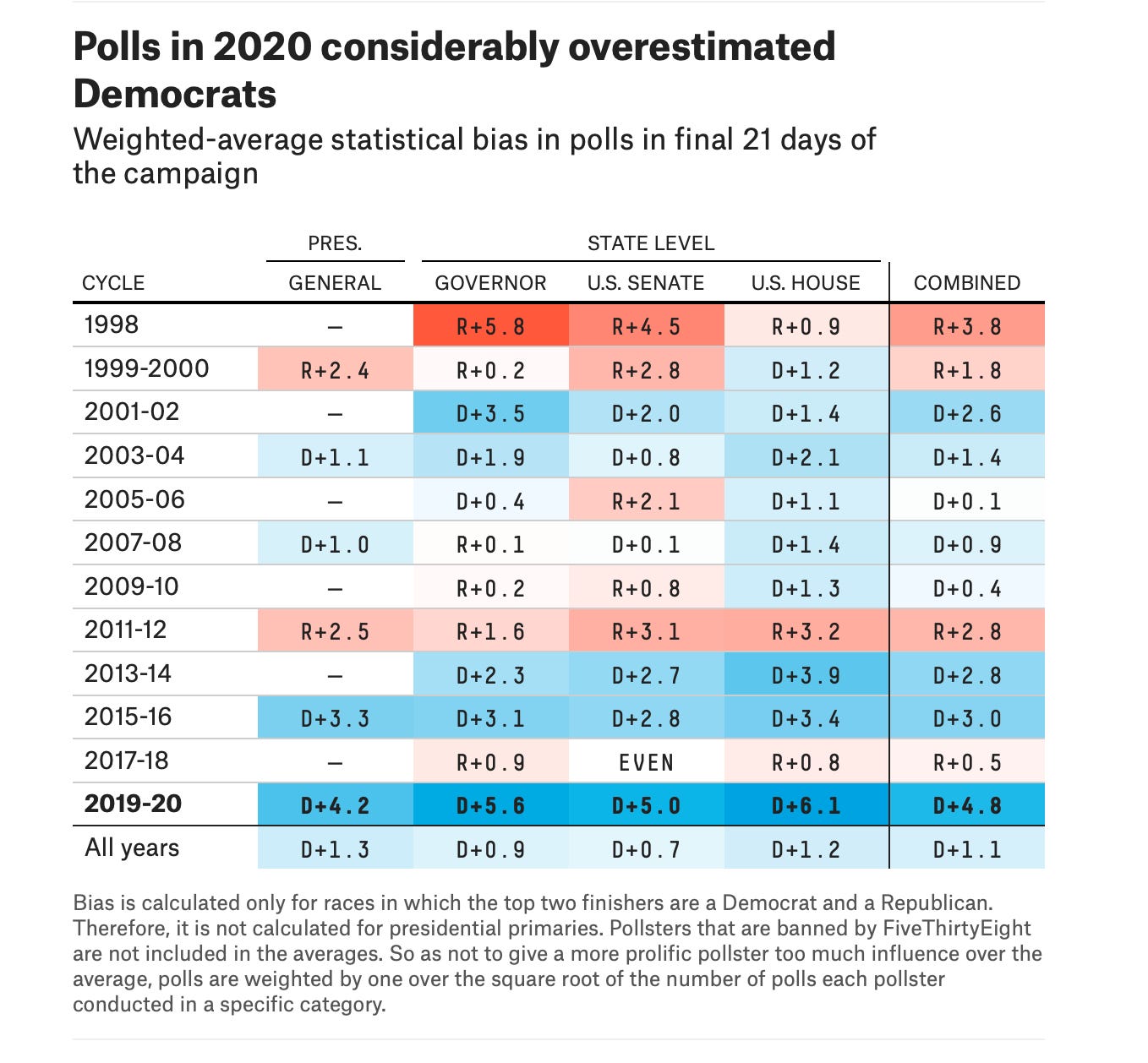 * Pollsters would say that they’re reweighting polls to be more reflective, not just simply to add more Republicans who tell pollsters they’re Republicans. “We were genuinely undercounting the non-college vote before”. This is true, but there’s no reason to think that if you average across all controlling variables that honest Republicans are actually undersampled, so by selective choosing variables to control for which increase the sampling of honest Republicans, you’re just creating a justification to add more honest Republicans. Note that this is true even if the specific variable in question is genuinely undersampled (i.e. this is not a p-hacking argument).